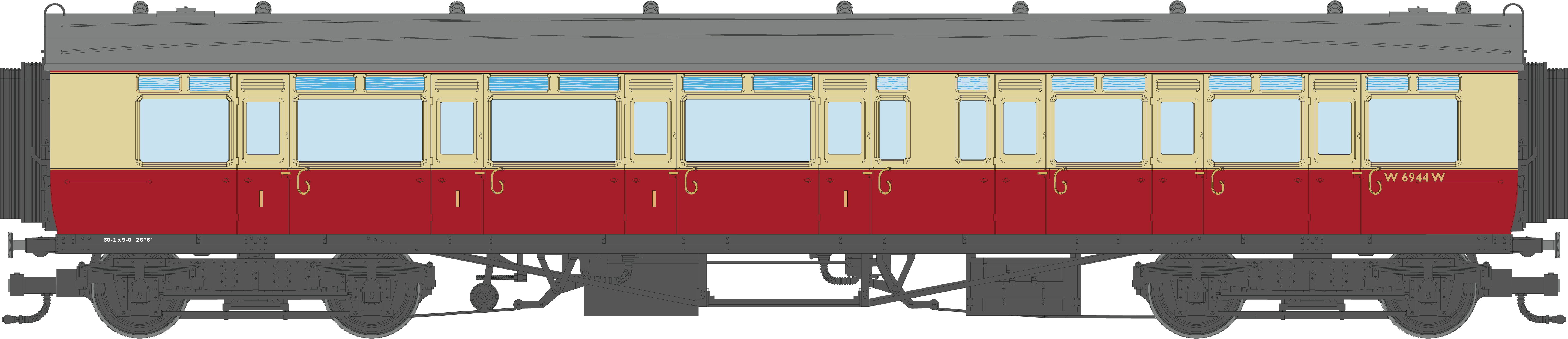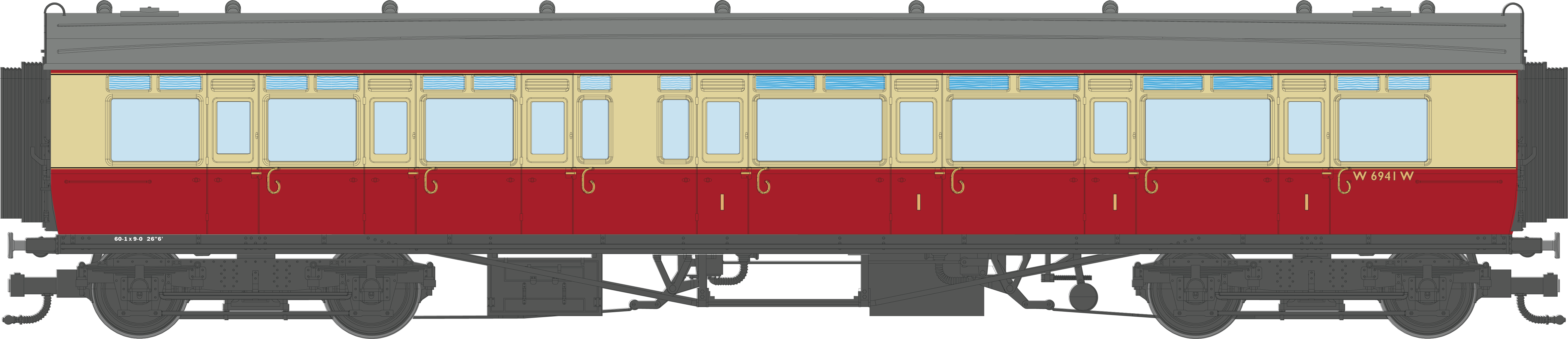 4P-021-603 GWR Corridor Toplight BR Crimson & Cream Composite RH W6941W