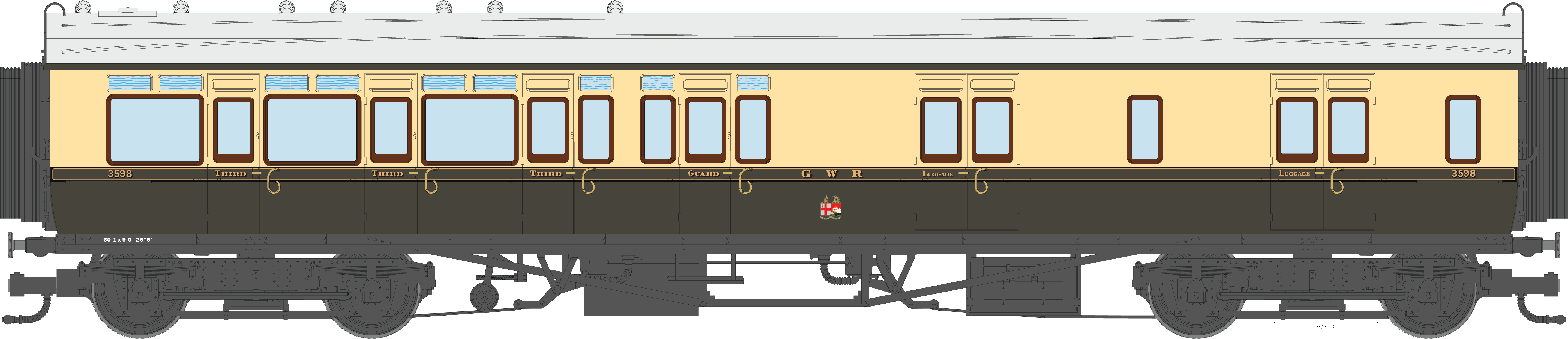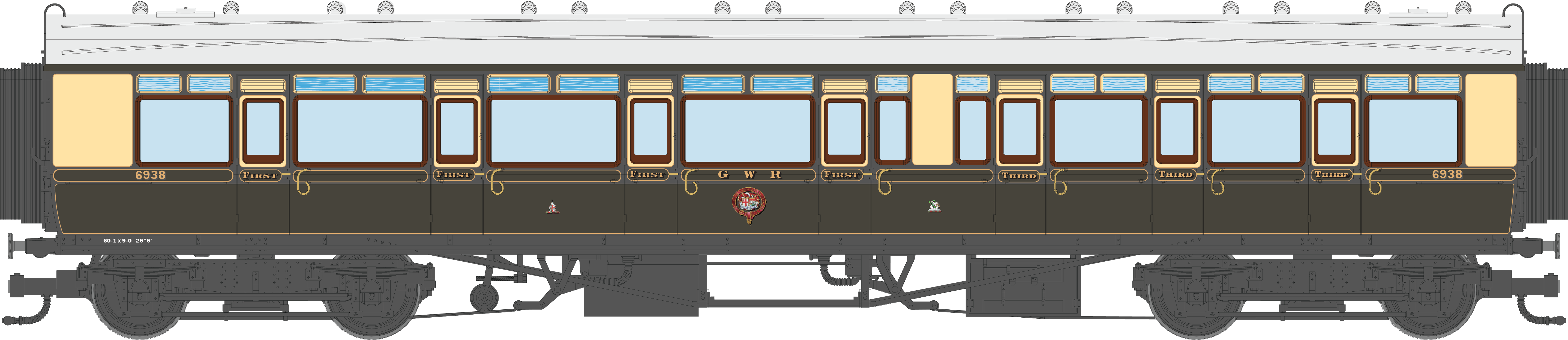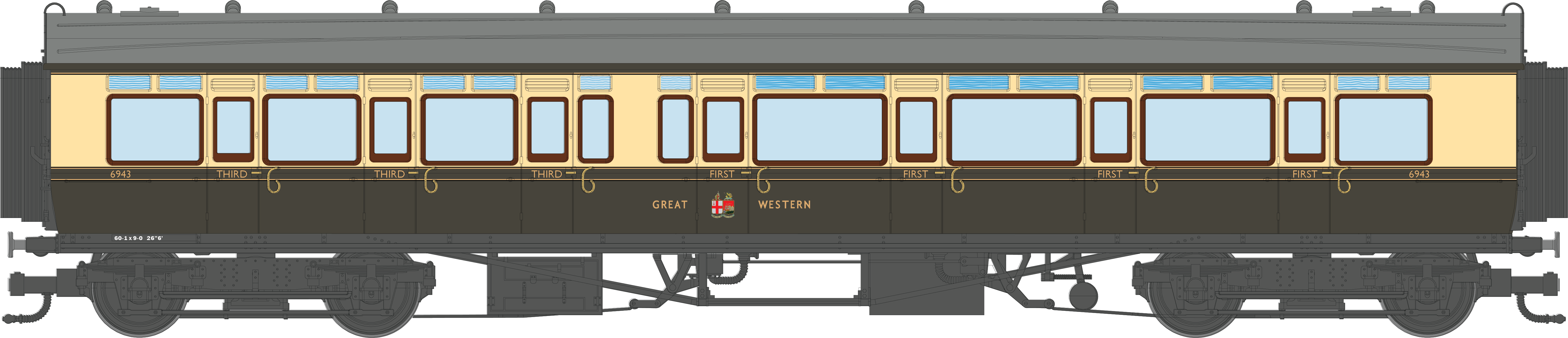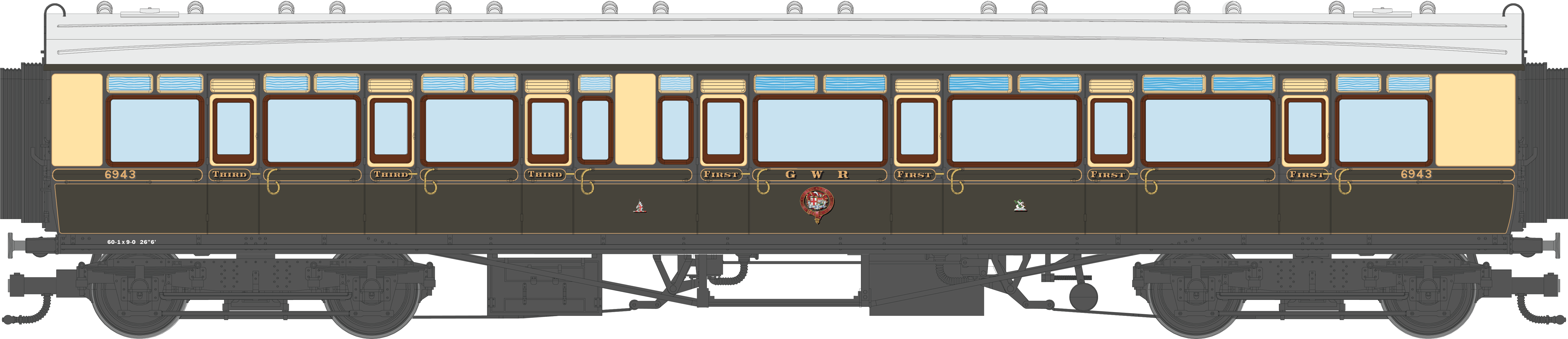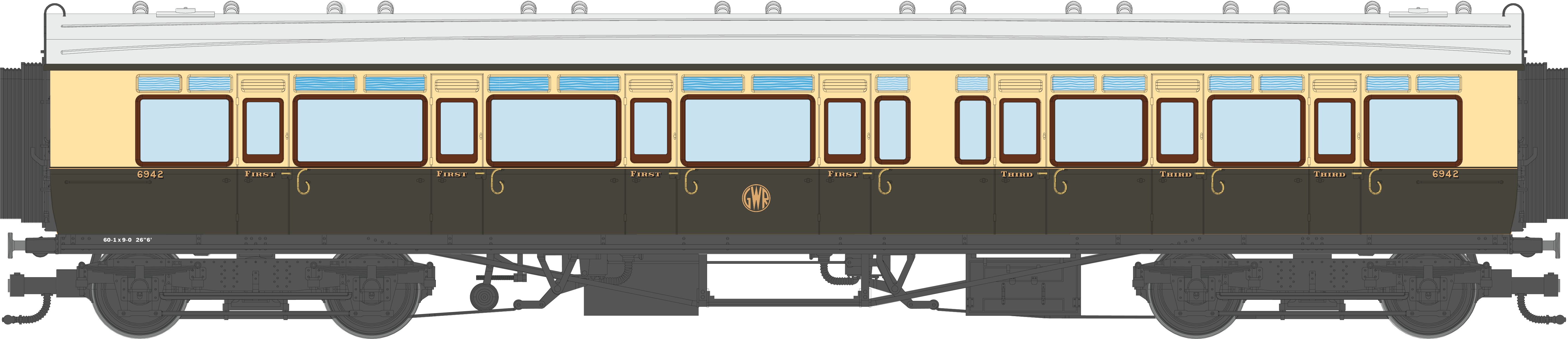 4P-021-303 GWR Corridor Toplight 1935 Chocolate & Cream Roundel Composite RH 6939