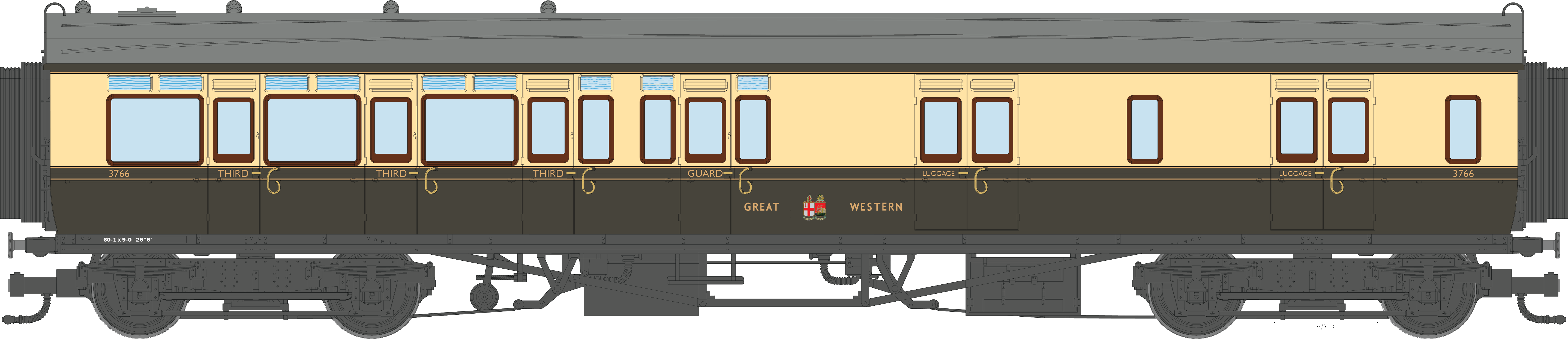 4P-021-504 GWR Corridor Toplight 1947 Chocolate & Cream Great Western Brake Third LH 3766