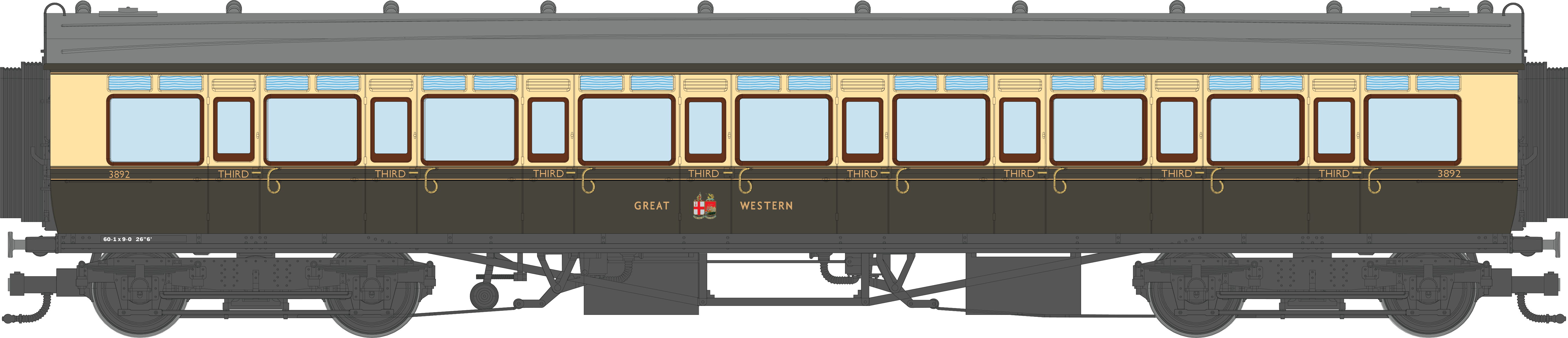4P-021-501 GWR Corridor Toplight 1947 Chocolate & Cream Great Western All Third 3892