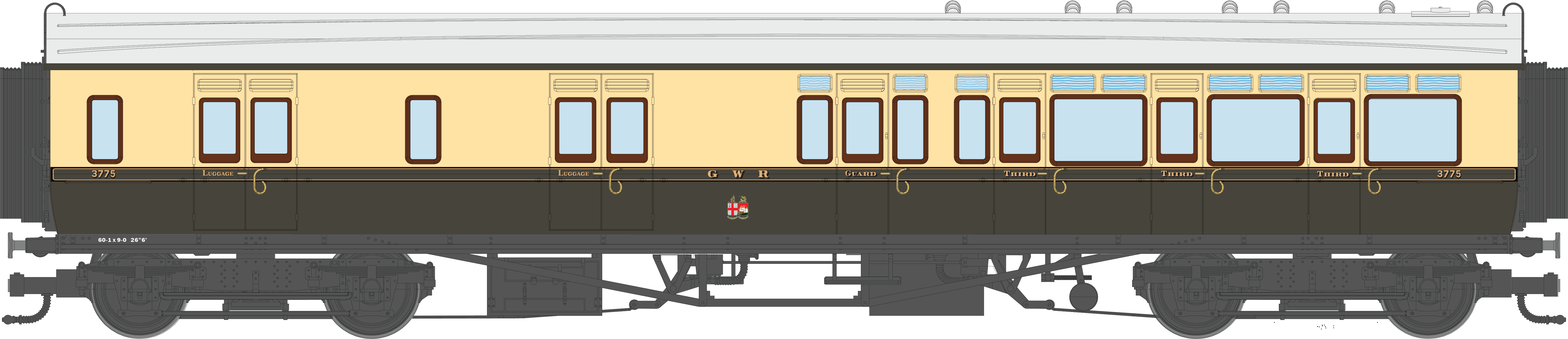 4P-021-205 GWR Corridor Toplight 1930 Chocolate & Cream Twin Cities Brake Third RH 3775