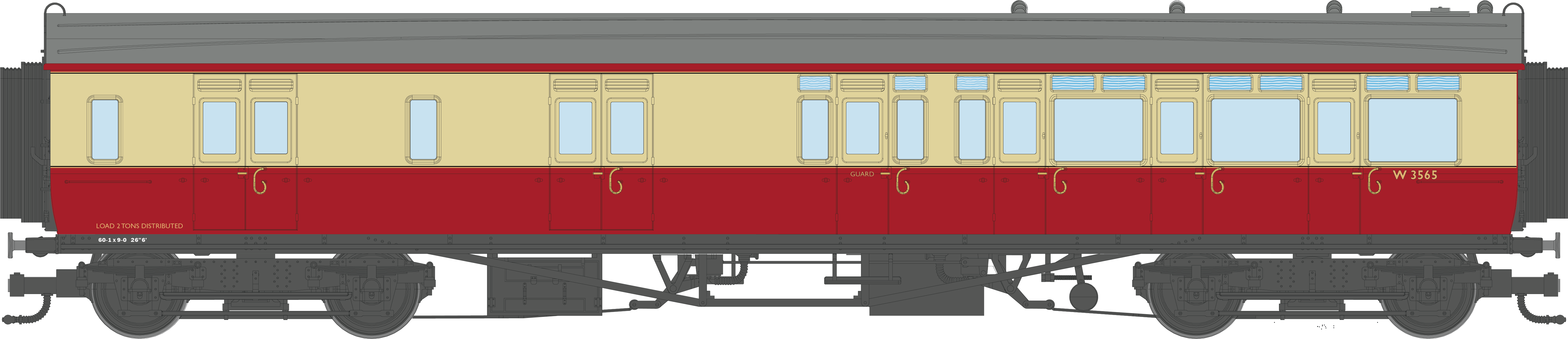 4P-021-605 GWR Corridor Toplight BR Crimson & Cream Brake Third RH W3565