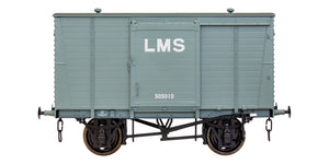 Between 1935 & 1936 7,500 12 ton vans were constructed to Diagram D1897, Lots 823,824 & 825 being vacuum fitted whilst Lot 826, 838, 839 and 840 was unfitted. Further similar vehicles were built up to 1945. Many non-fitted Vans were subsequently fitted by BR with automatic vacuum brakes, the pipes however were ‘coach fashion’ and did not have the LMS ‘wagon type’ upright pipe.