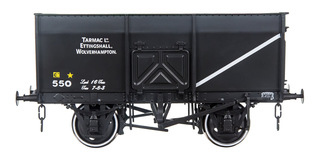 The 14 ton slope sided mineral wagons were designed and patented by Charles Roberts in 1935 and prior to the war many could be seen in Private owner liveries. The MWT (Ministry of War Transport) ordered 9,000 wagons in 1943, however only 7,000 were completed by nationalization. B.R. later designated these wagons to Diagram1/100, and uprated them to 16 tons. Four further batches were ordered in 1946 with many lasting into the 1960’s