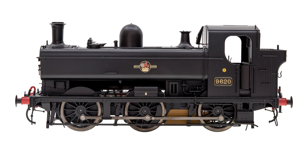 The 8750 class can be distinguished from the 5700 class by the totally enclosed larger cab. Whistle shields and bunker steps with handrails were added from 1936. A new water feed was introduced in 1942 with the clack valves being fitted inside a case on top of the boiler in front of the dome, which became standard for builds after 1944. Between 1956 and 1963, thirteen 5700 locomotives were sold to the London Transport being painted in the attractive lined red livery. The NCB bought five 5700 locomotives between 1959 and 1965, with number 7754 still working in 1975.